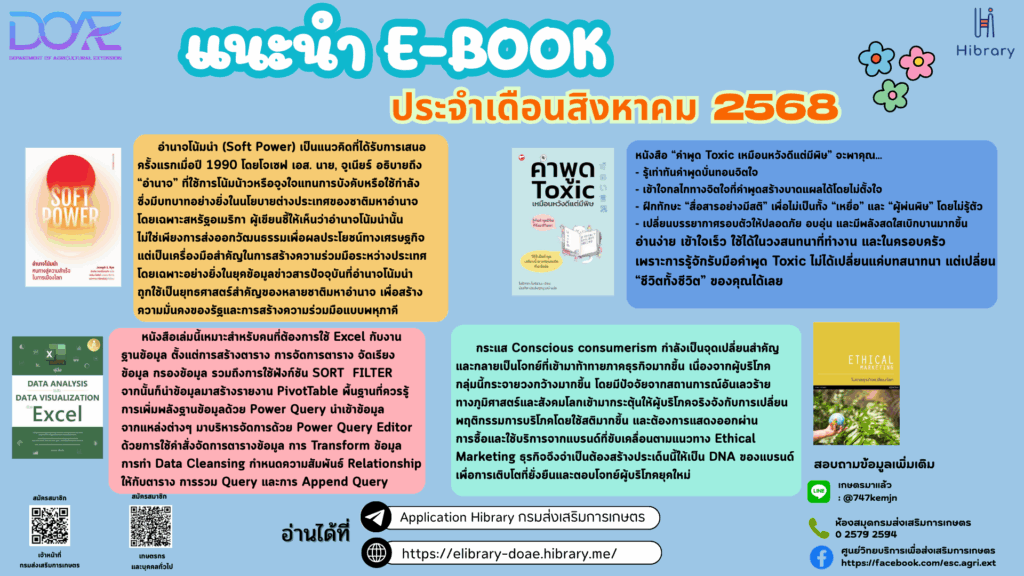 ห้องสมุดกรมส่งเสริมการเกษตรแนะนำหนังสืออิเล็กทรอนิกส์ (e-Book) ประจำเดือนสิงหาคม 2568