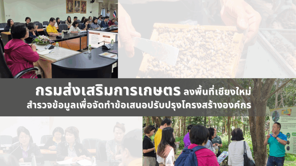 วันที่ 16 กันยายน 2568 – กรมส่งเสริมการเกษตร โดยนางอมรทิพย์ ภิรมย์บูรณ์ ผู้อำนวยการกองการเจ้าหน้าที่ รักษาราชการแทนผู้อำนวยการสำนักพัฒนาการถ่ายทอดเทคโนโลยี และนายวิรัช จันทรโรทัย ผู้อำนวยการกลุ่มพัฒนาระบบบริหาร พร้อมด้วยทีมที่ปรึกษาจากสถาบันที่ปรึกษาเพื่อพัฒนาประสิทธิภาพในราชการ (สปร.) ลงพื้นที่จังหวัดเชียงใหม่ เพื่อสำรวจและเก็บข้อมูล ภายใต้โครงการจัดทำข้อเสนอการปรับปรุงโครงสร้างการแบ่งส่วนราชการ การแบ่งหน่วยงานภายใน อัตรากำลัง สมรรถนะ และทักษะของข้าราชการ กรมส่งเสริมการเกษตร และได้มีการศึกษาแลกเปลี่ยนข้อมูลกับหน่วยงานในพื้นที่ ได้แก่