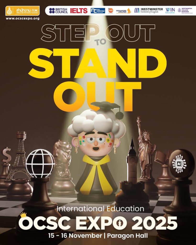 สำนักงาน ก.พ. ขอเชิญชวนผู้ที่สนใจเข้าร่วมงานมหกรรมการศึกษาต่อต่างประเทศ (OCSC International Education Expo 2025) ซึ่งเป็นงานที่สำนักงาน ก.พ. จัดขึ้นทุกปี โดยเชิญสถาบันการศึกษาจากประเทศต่างๆ มาออกบูธเพื่อให้ข้อมูลเกี่ยวกับการศึกษาต่อต่างประเทศ โดยปีนี้ จะจัดในวันที่ 15 – 16 พฤศจิกายน 2568 ณ พารากอน ฮอลล์ ชั้น 5 ศูนย์การค้าสยามพารากอน