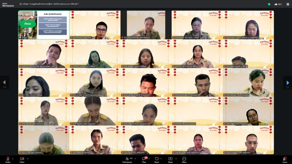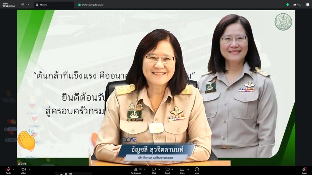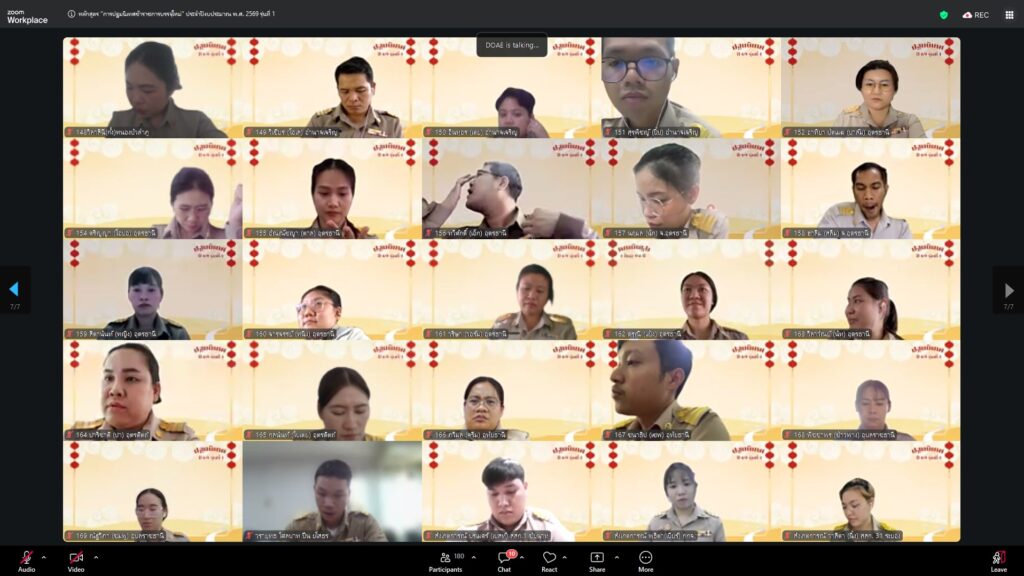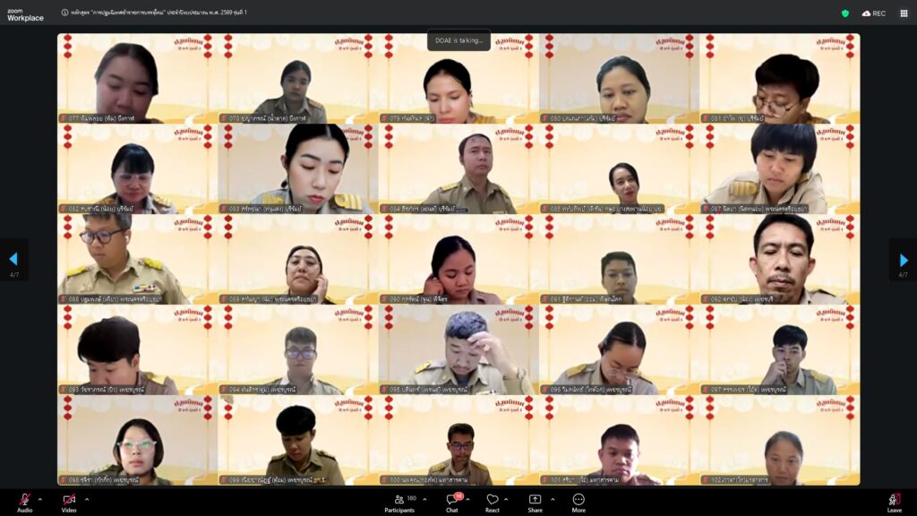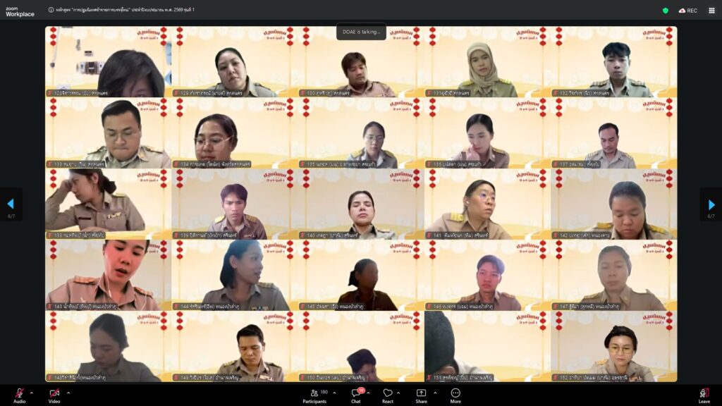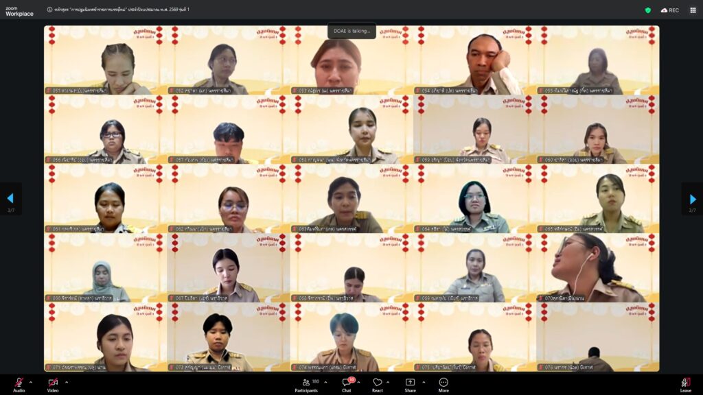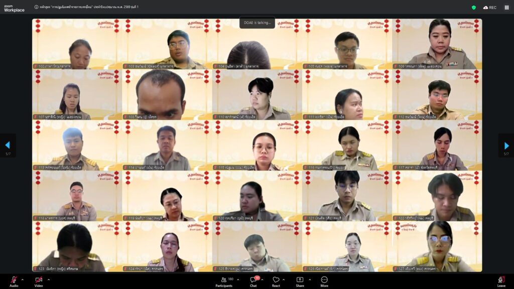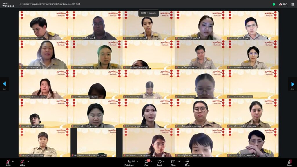 วันที่ 23 กุมภาพันธ์ 2569 นางอัญชลี สุวจิตตานนท์ อธิบดีกรมส่งเสริมการเกษตร ให้เกียรติบรรยายพิเศษในหัวข้อ “บ่มเพาะกล้าพันธุ์ใหม่ สู่รั้วกรมส่งเสริมการเกษตร” ในการฝึกอบรมหลักสูตร “การปฐมนิเทศข้าราชการบรรจุใหม่” ประจำปีงบประมาณ 2569 รุ่นที่ 1 บุคคลเป้าหมายประกอบด้วยข้าราชการบรรจุใหม่ในตำแหน่ง นักวิชาการส่งเสริมการเกษตรปฏิบัติการ รวม 169 คน ดำเนินการจัดในรูปแบบออนไลน์ ณ ห้องถ่ายทอดออนไลน์ ชั้น 3 อาคารส่งเสริมการเกษตรเบญจสิริกิติ์ กรมส่งเสริมการเกษตร เพื่อเสริมสร้างความรู้ ความเข้าใจ และเตรียมความพร้อมให้แก่ข้าราชการที่ได้รับการบรรจุใหม่ในการปฏิบัติราชการอย่างมีประสิทธิภาพ
