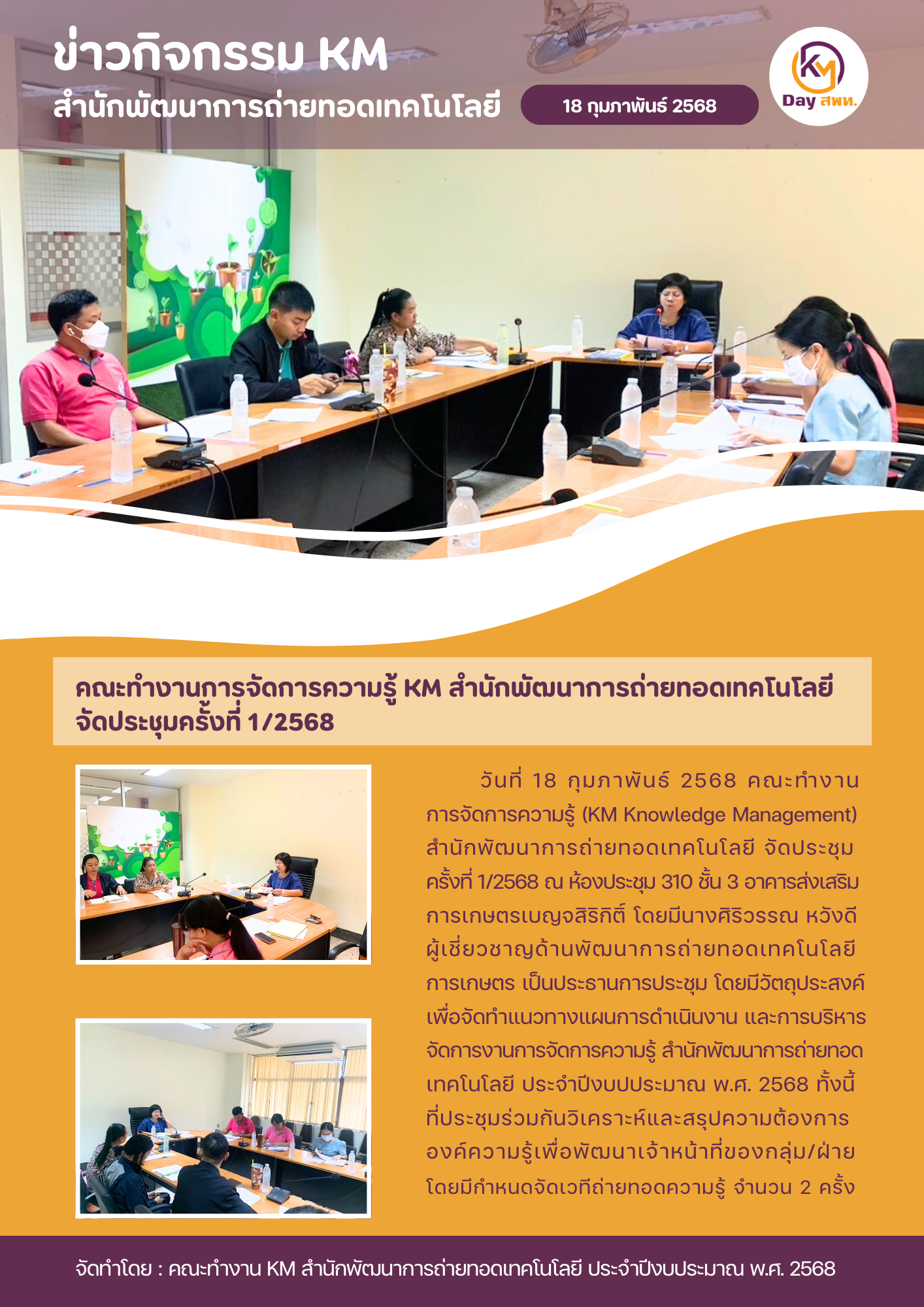 จำนวนผู้เข้าชม : 22 ข่าวกิจกรรม KM สำนักพัฒนาการถ่ายทอดเทคโนโลยี คณะทำงานการจัดการความรู้ KM สำนักพัฒนาการถ่ายทอดเทคโนโลยี จัดประชุมครั้งที่ 1/2568 Post navigation 2.คณะทำงานการจัดการความรู้ KM สพท. จัดประชุมครั้งที่ 2/2568