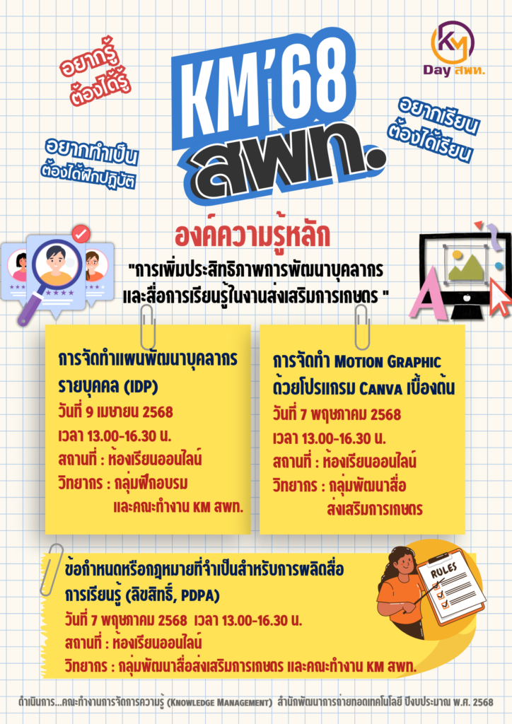 องค์ความรู้หลัก “การเพิ่มประสิทธิภาพการพัฒนาบุคลากรและสื่อการเรียนรู้ในงานส่งเสริมการเกษตร”